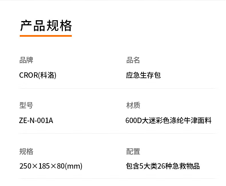 商品名称:科洛(CROR)ZE-N-001A 单肩迷彩应急生存包 户外救援野外工作医疗护理急救包 支持定制 单位:个