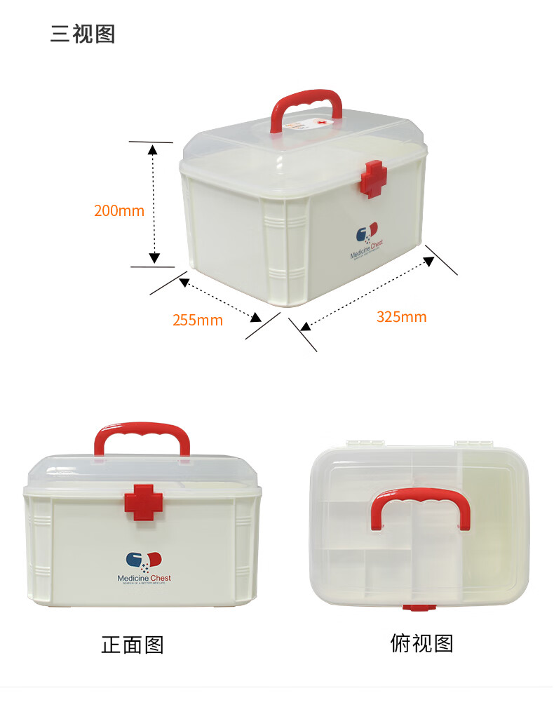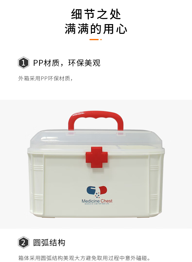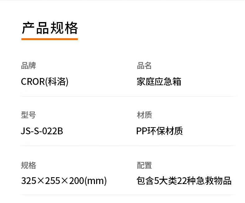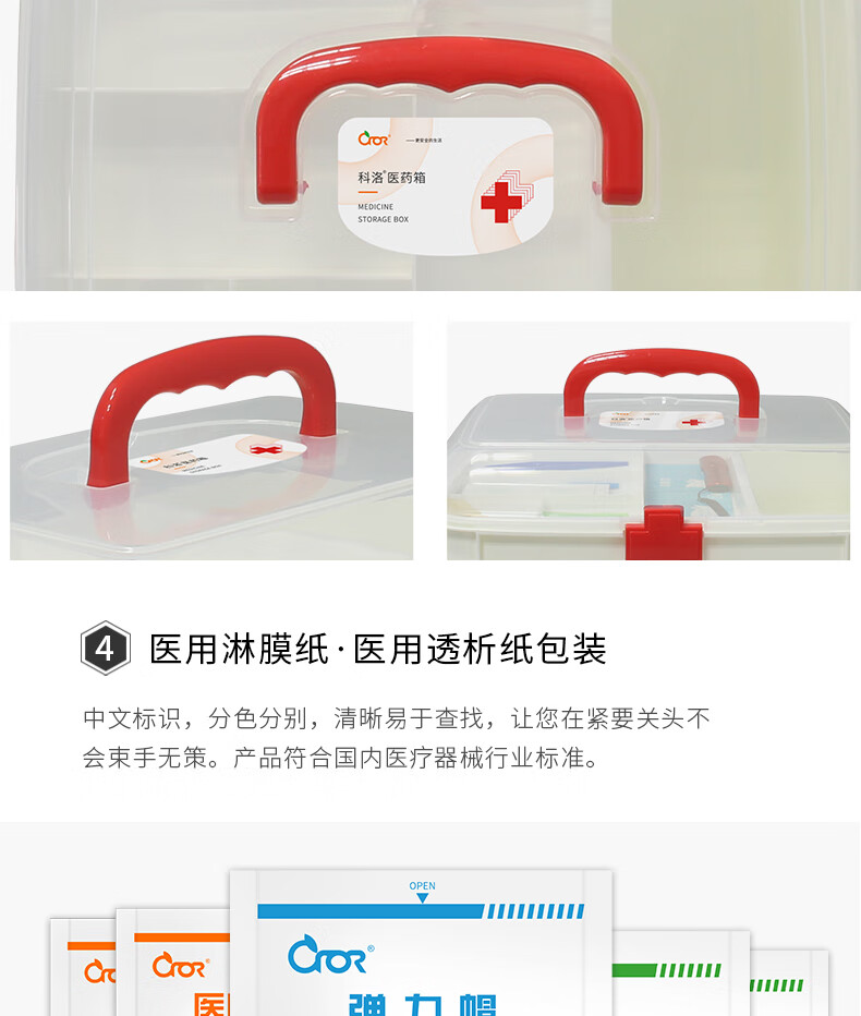 商品名称:科洛(CROR)家庭医疗箱塑料急救箱收纳医药盒JS-S-022B 单位:个