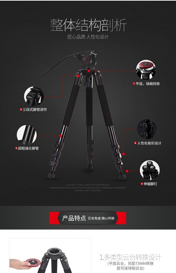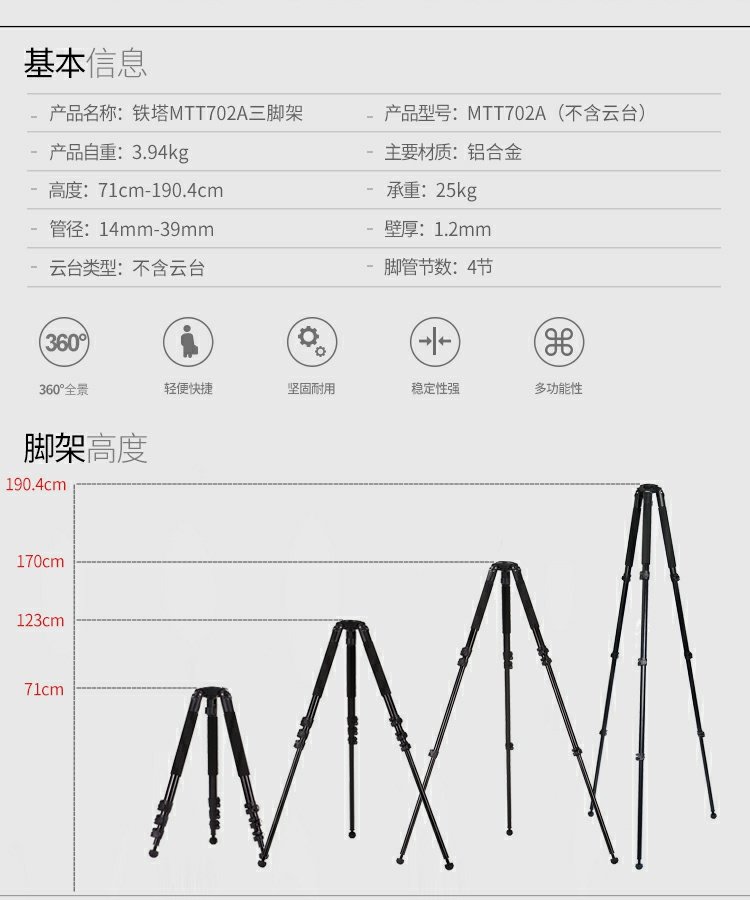 商品名称:miliboo/米泊 单反摄影摄像机三脚架不含云台便携铝合金角 702A