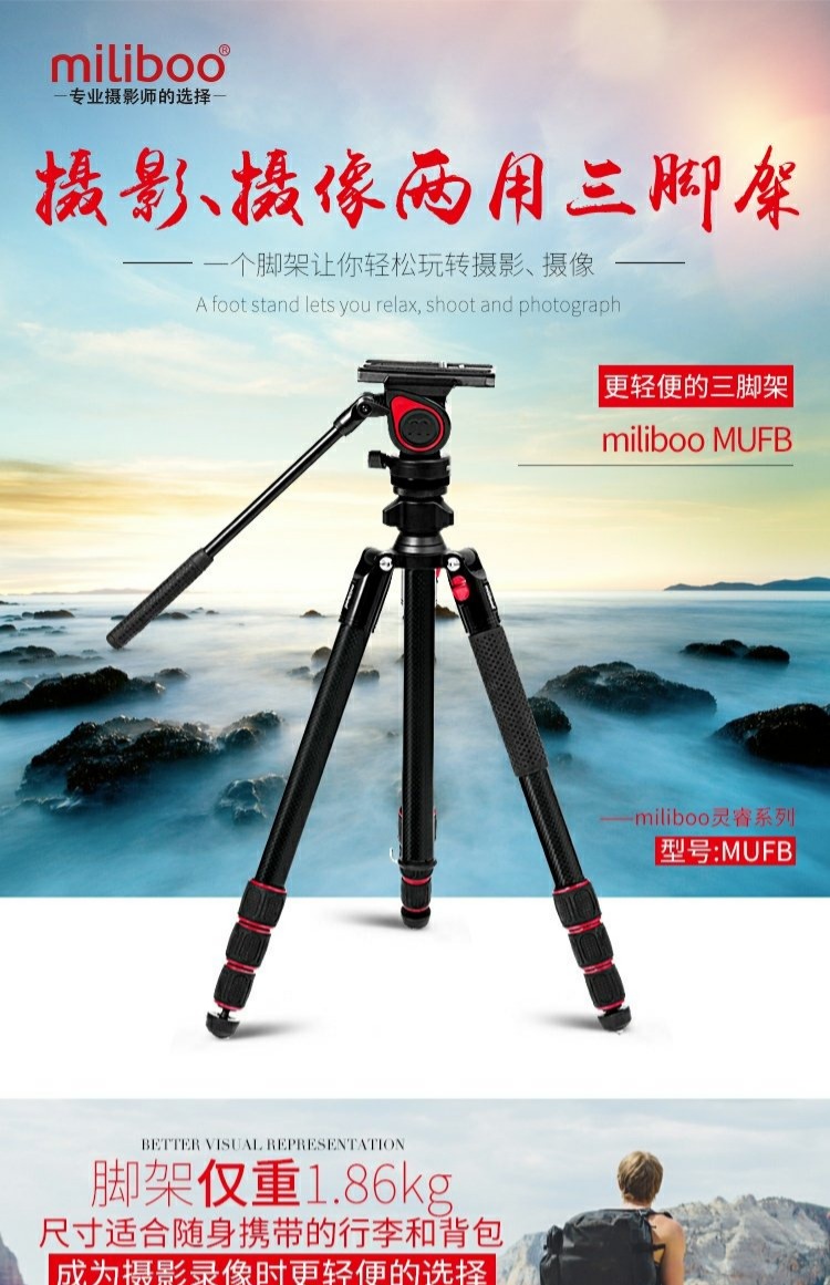 商品名称:miliboo/米泊 轻便三脚架打鸟液压阻尼云台便携摄影摄像机支架 MUFB