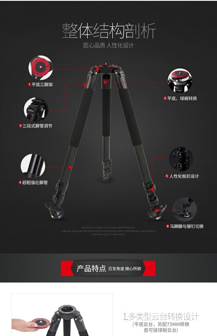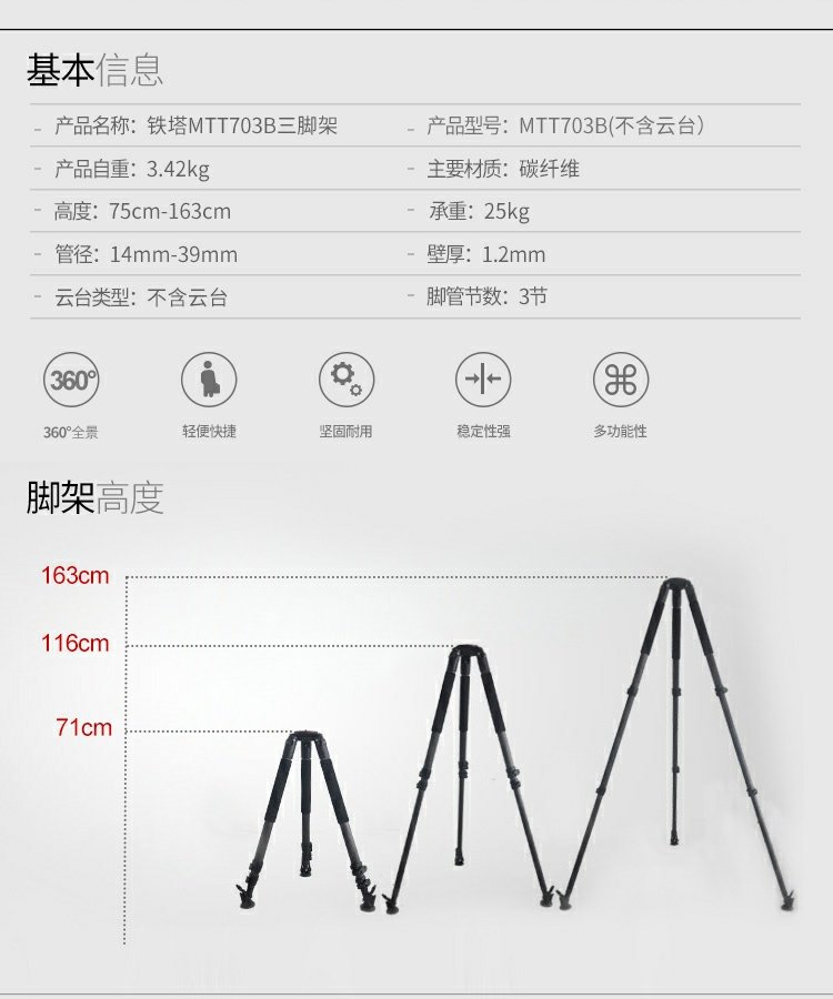 商品名称:miliboo/米泊 单反摄影摄像机三脚架不含云台便携铝合金角架 703B