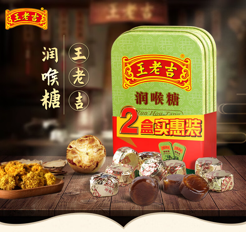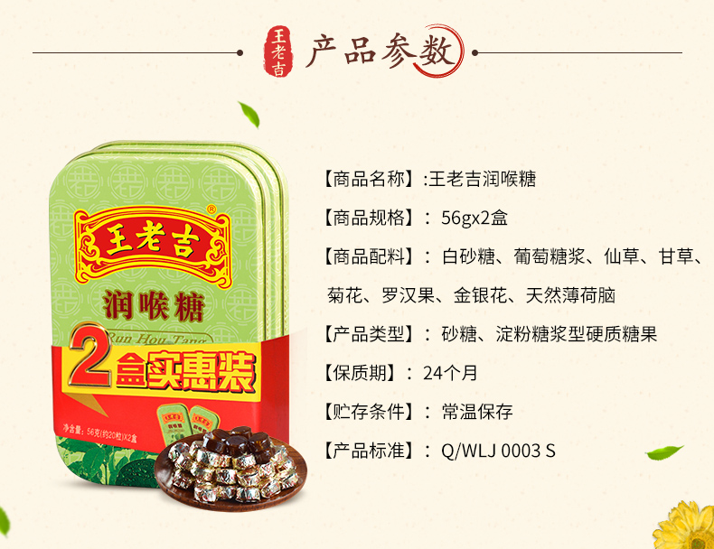 商品名称:王老吉 原味润喉糖 0防腐剂色素 甘草薄荷糖 草本糖果零食 56g*2小盒 单位:组
