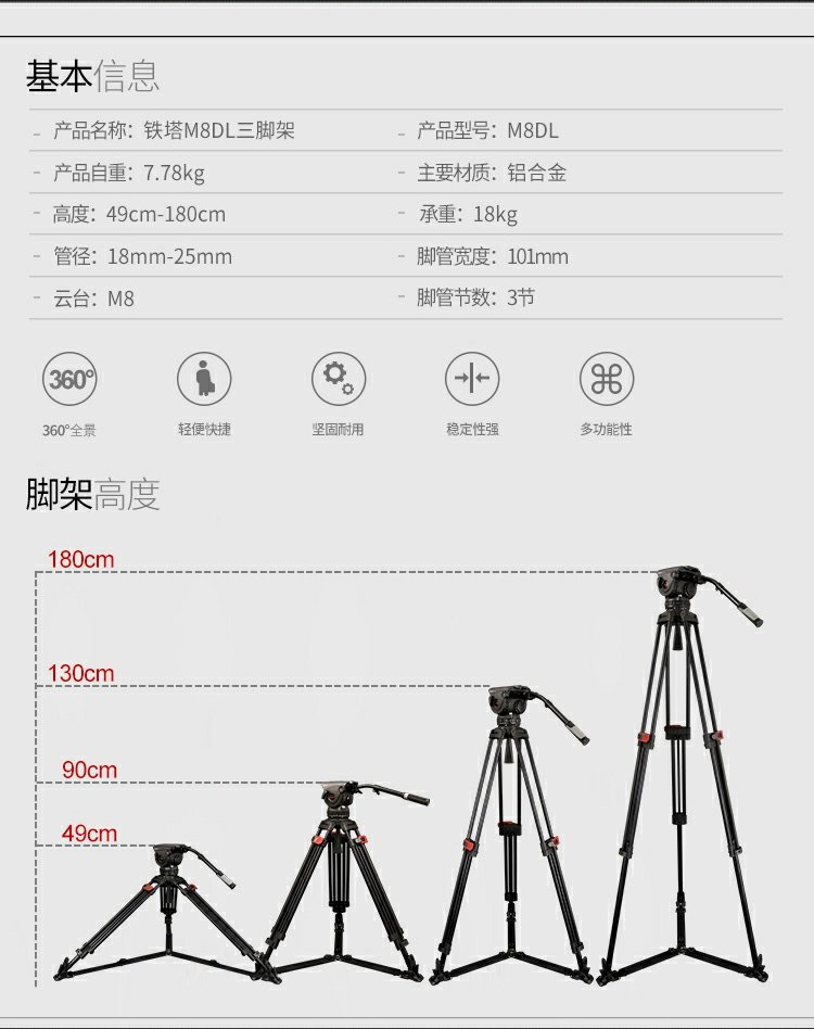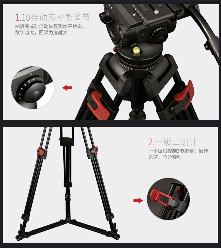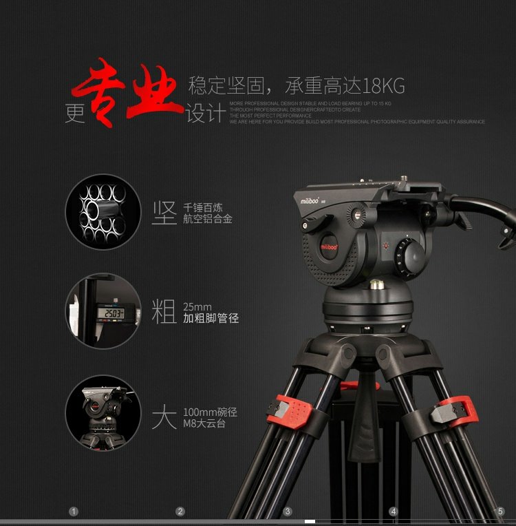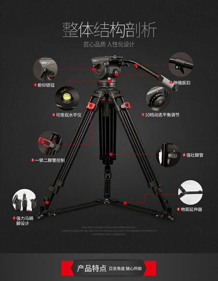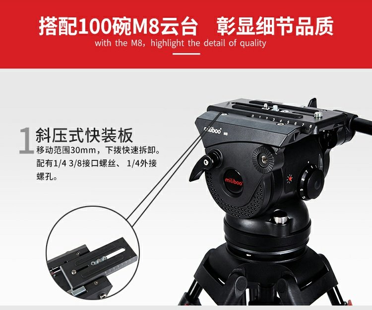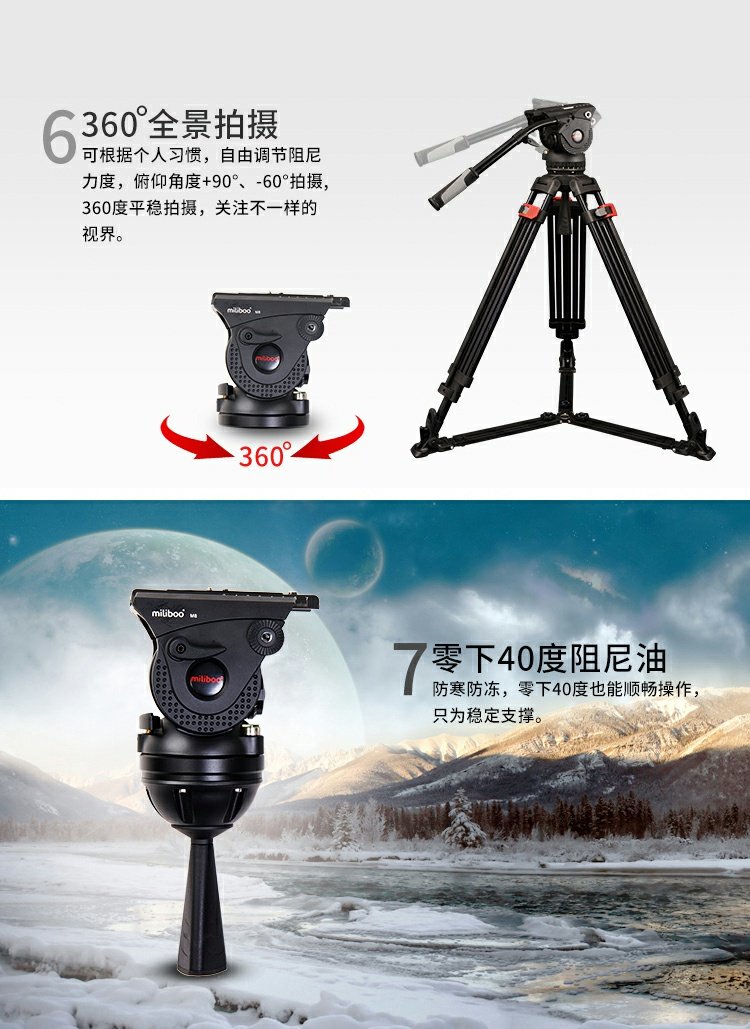商品名称:miliboo/米泊 铝合金100碗电影级三脚架8档动态平衡含云台套装 M8DL