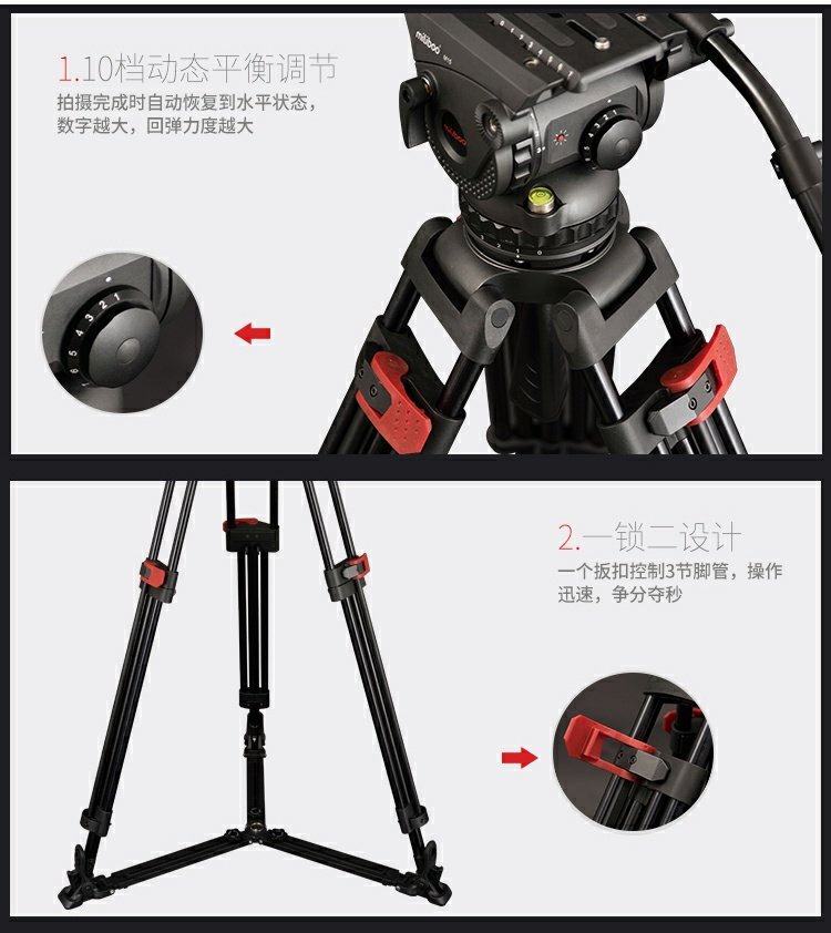 商品名称:miliboo/米泊 单反摄影摄像机三脚架带液压云台便携铝合金角 M18DT