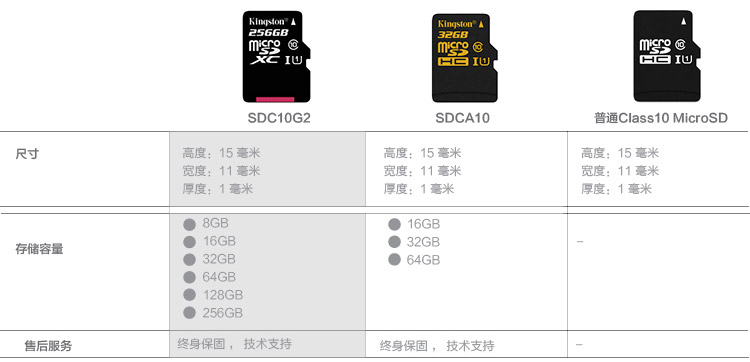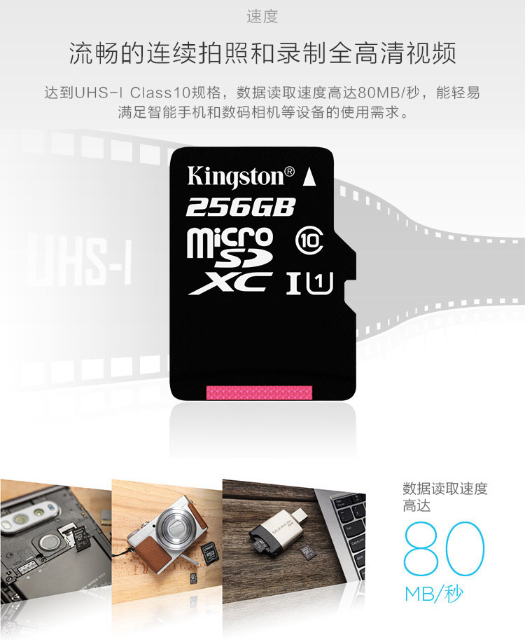 商品名称:金士顿 TF 手机内存卡C10读速80M行车记录仪卡 MicroSD存储卡 256G