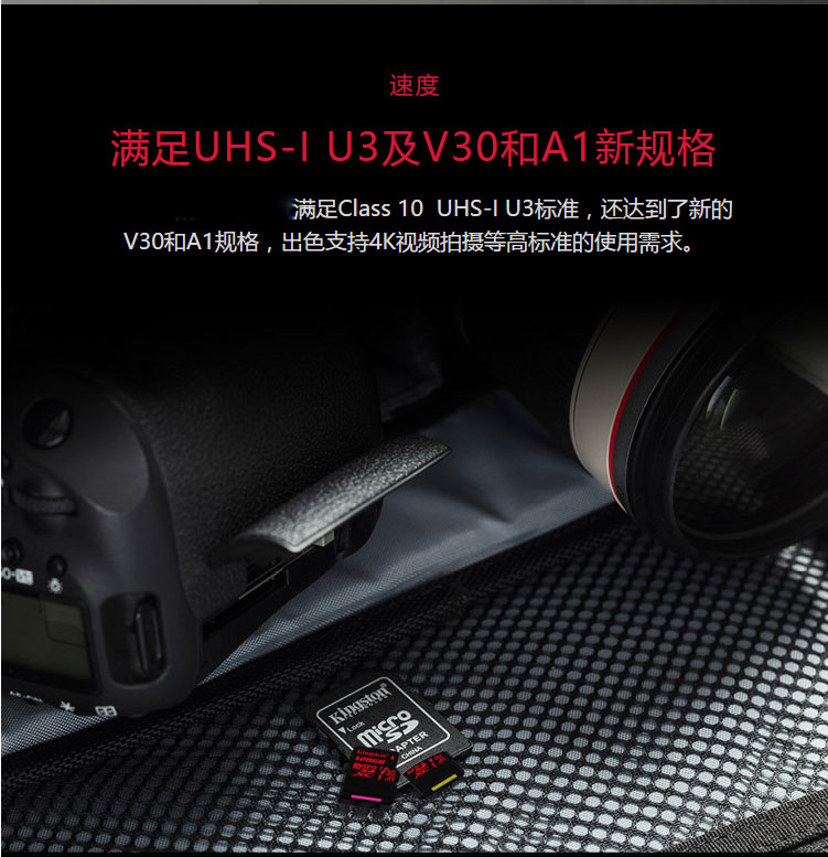金士顿 SDCR TF卡 MicroSD卡 高速存储卡SDCR U3支持4K高清录 128G