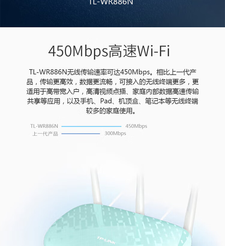 TP-LINK TL-WR886N 450M无线路由器(宝蓝) 智能路由 WIFI无线穿墙 单位:个