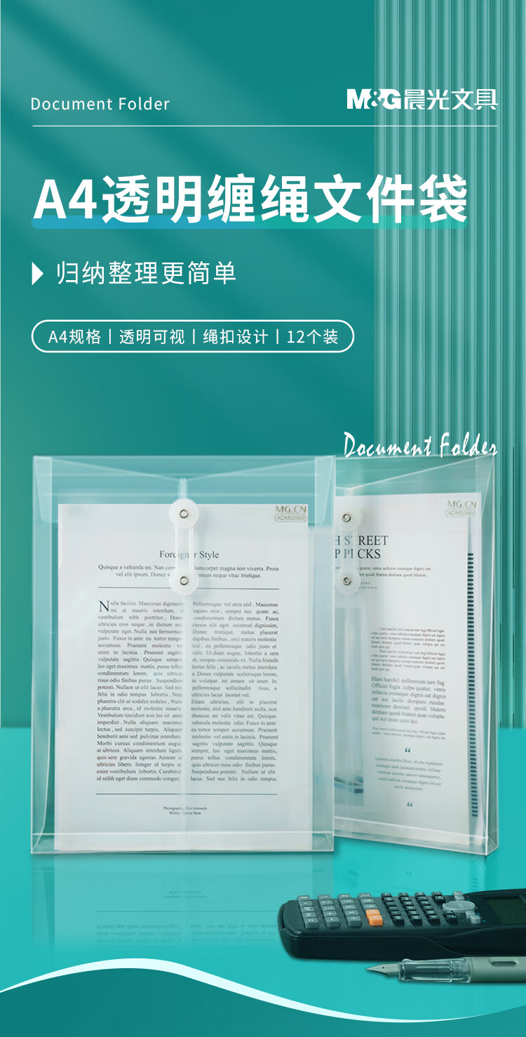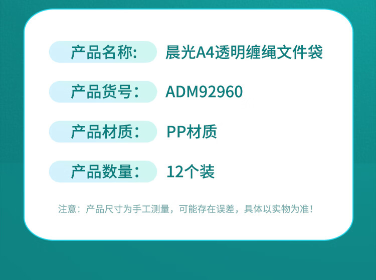 商品名称:晨光(M&G)文具12个装A4/2cm透明缠绳文件袋 绑带式档案袋 票据收纳资料袋ADM92960 单位:组