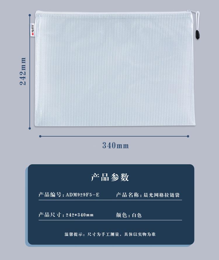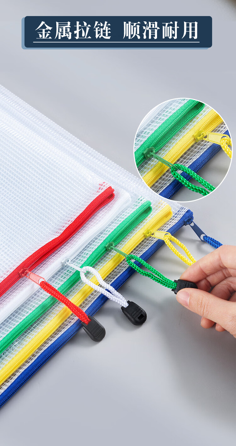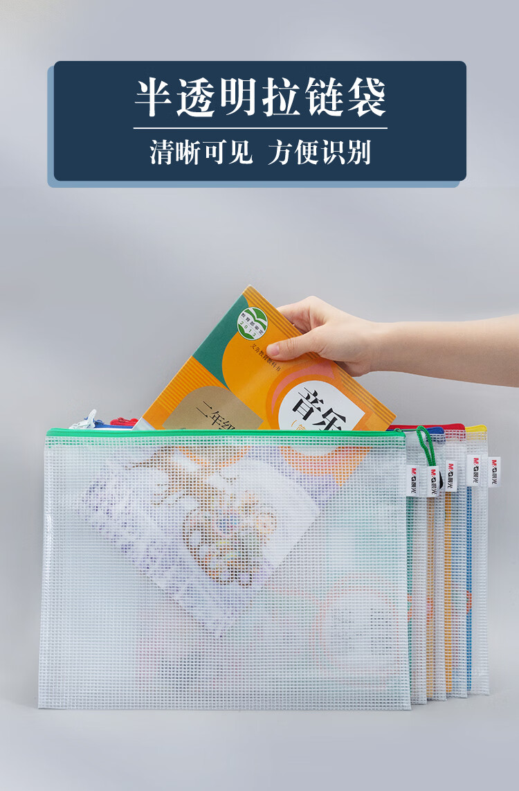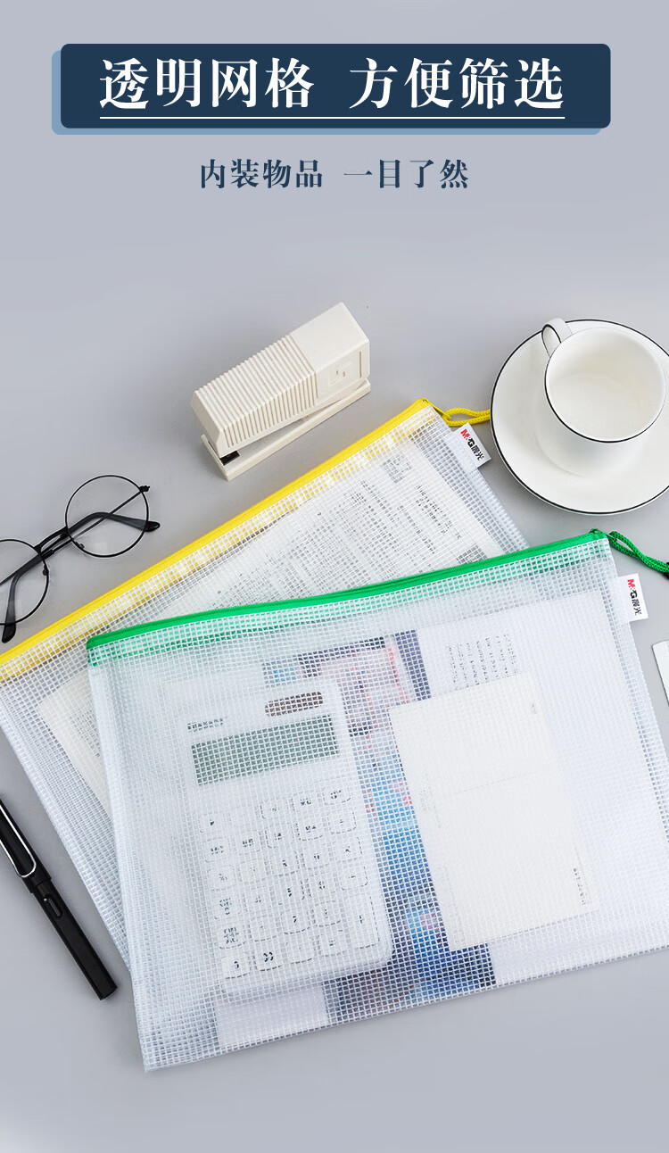 商品名称:晨光(M&G)文具5个A4透明网格拉链袋 办公文件资料防水袋 档案票据整理袋 白色ADM929F5-E 单位:组