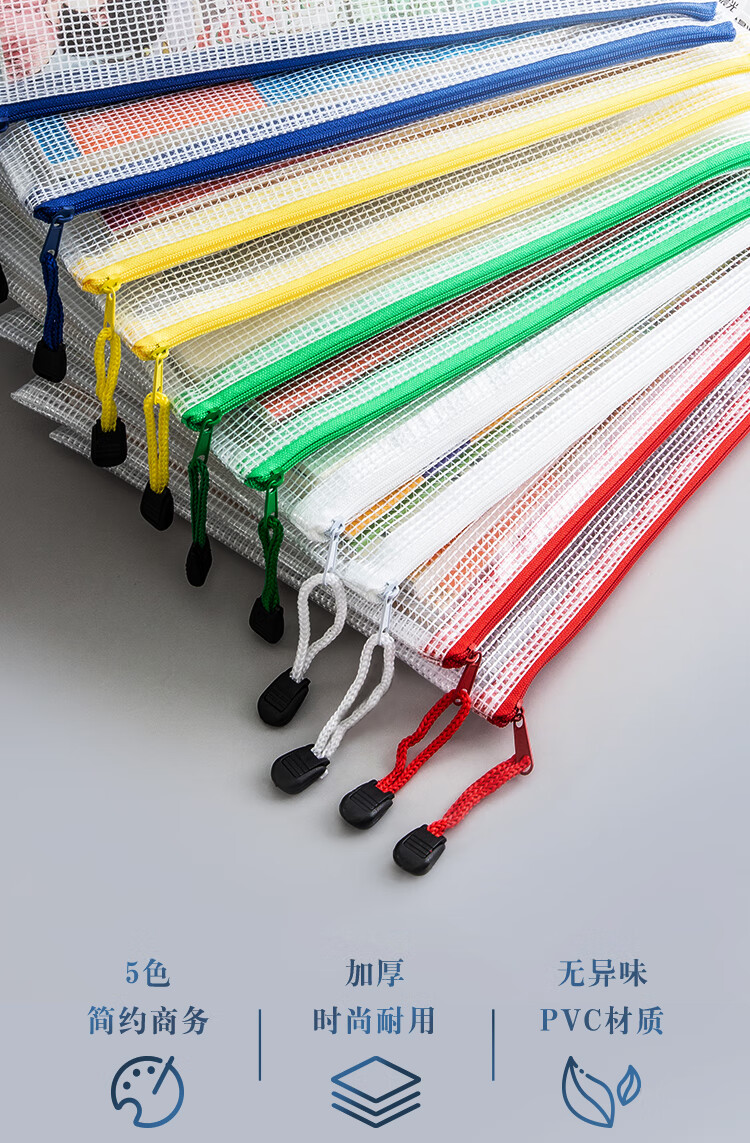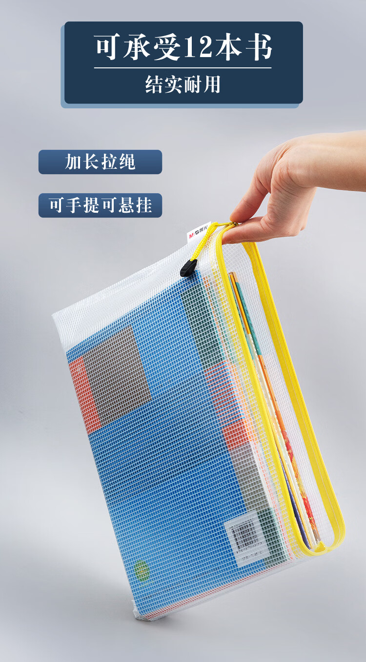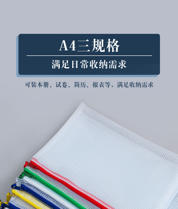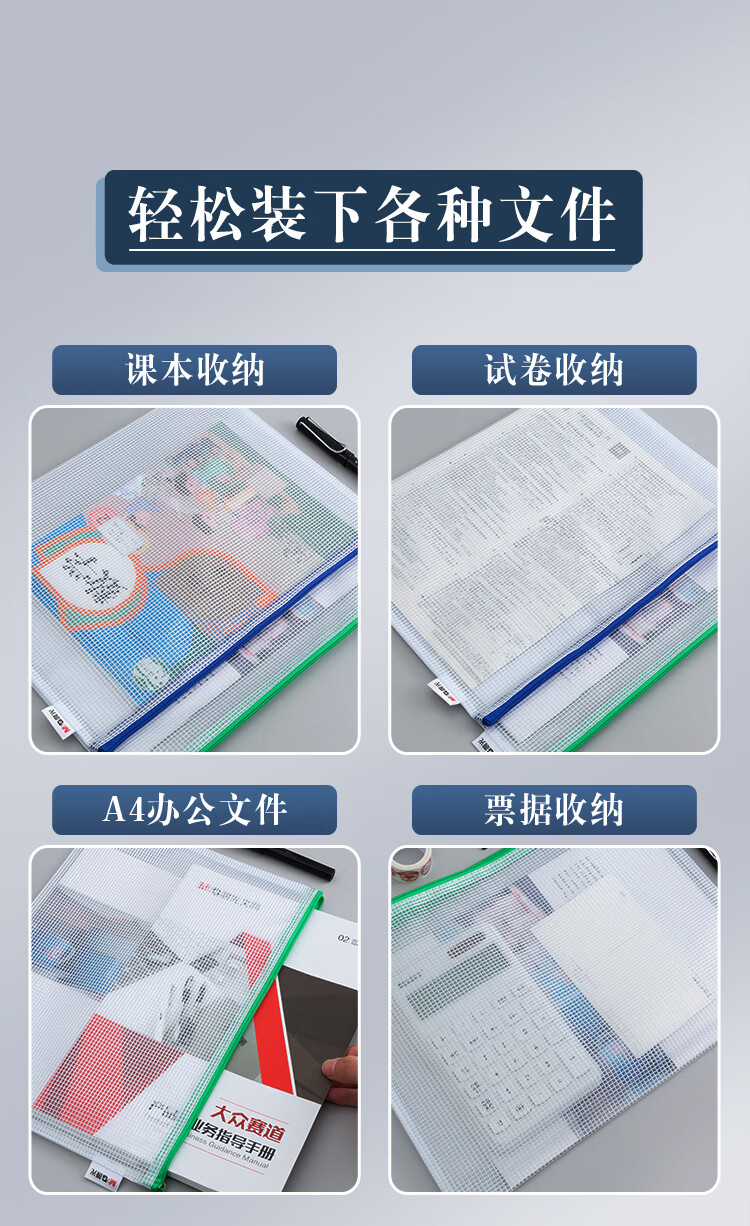 商品名称:晨光(M&G)文具5个A4透明网格拉链袋 办公文件资料防水袋 档案票据整理袋 白色ADM929F5-E 单位:组