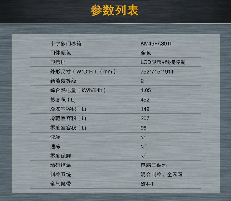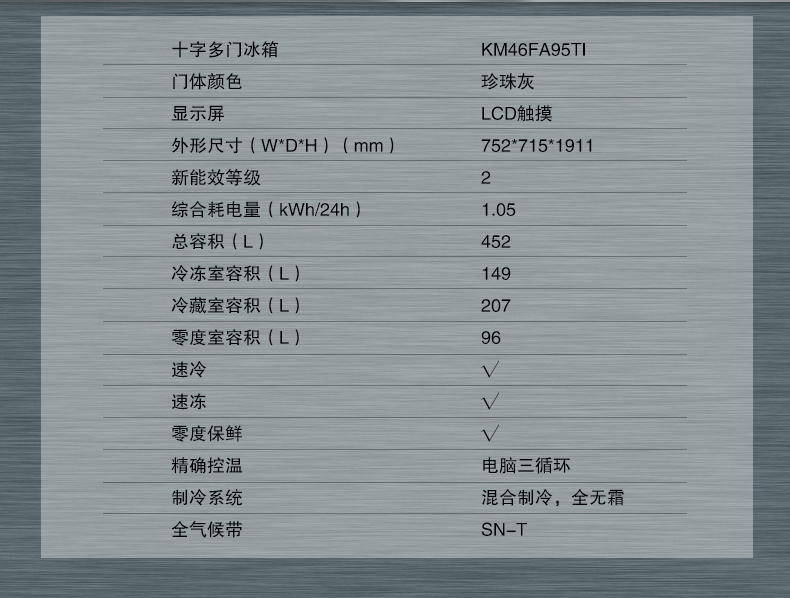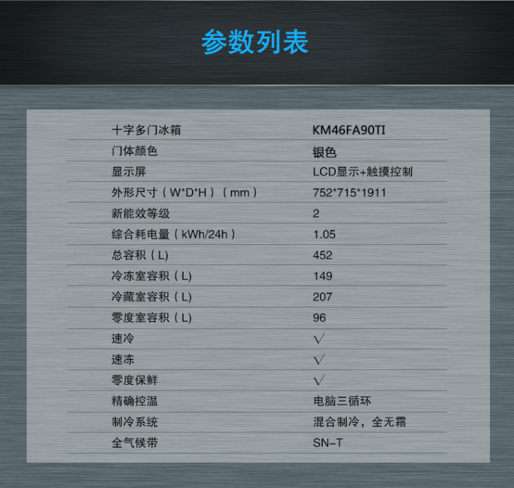 商品名称:西门子 十字多门冰箱 KM46FA30TI