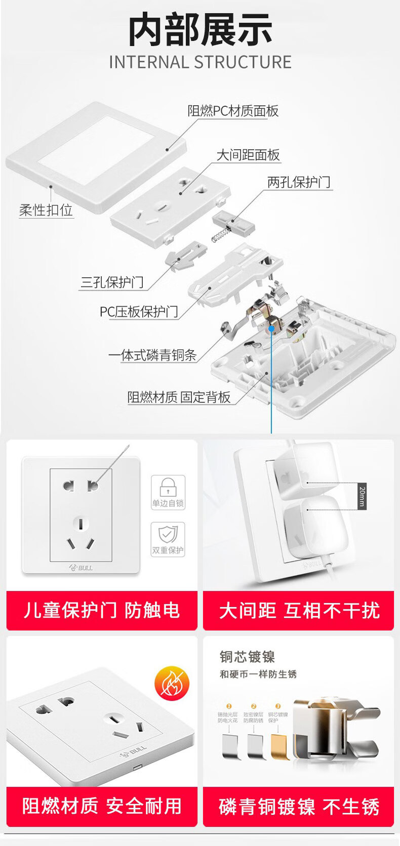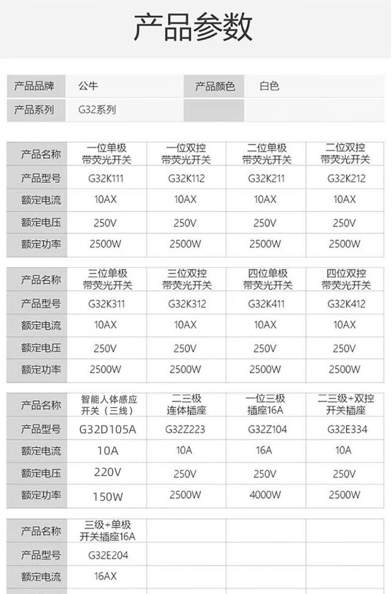 商品名称:公牛暗装开关插座 G32系列 象牙白86型 智能人体感应开关G32D105A三线 公牛插座 单位:个