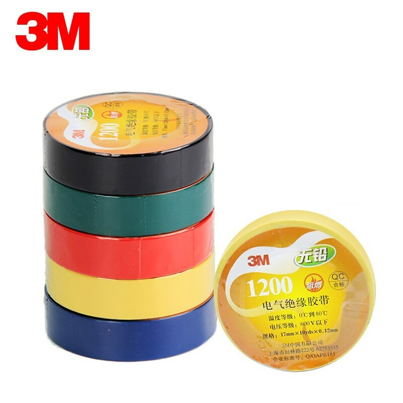 商品名称:3M 1200#电气绝缘胶带 600v以下PVC电气胶带阻燃 17MM*10码*0.12MM 多色5卷装 单位:卷