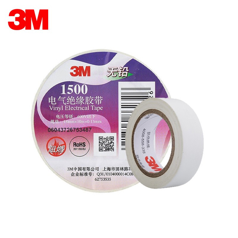 商品名称:3M 1500# 无铅电工胶布电气绝缘胶带 汽修家装耐磨防潮耐酸碱 白色 单卷装 单位:卷