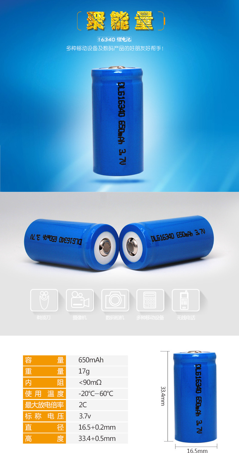 商品名称:DLG德朗能 锂电池3.6V 16340-650mAh尖头