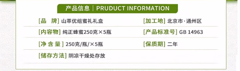 商品名称:中粮山萃荆条纯正蜜500g