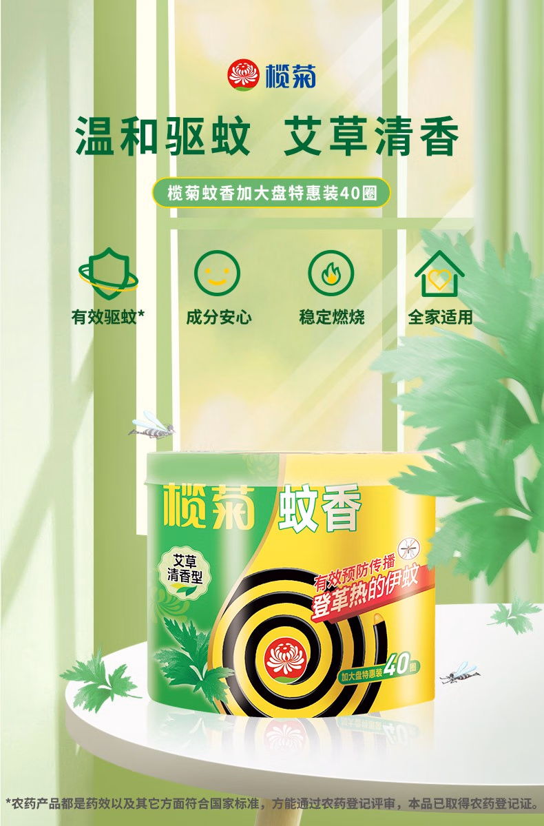 商品名称:榄菊加大盘艾草型蚊香塑料筒装(40单圈)