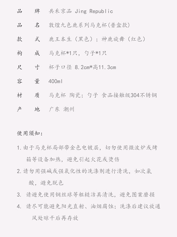 商品名称:共禾京品 敦煌九色鹿马克杯(彩盒款)