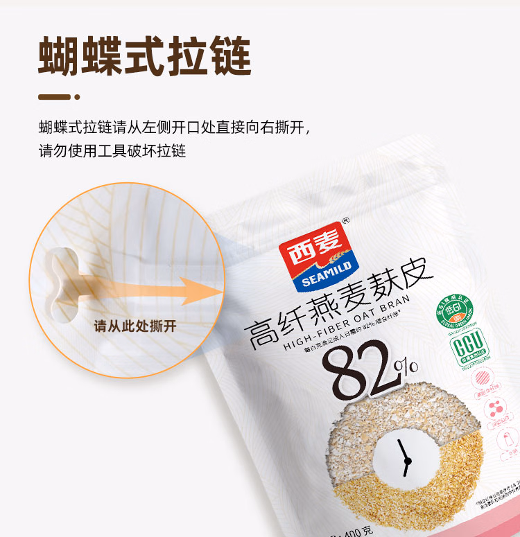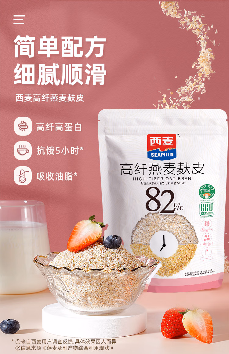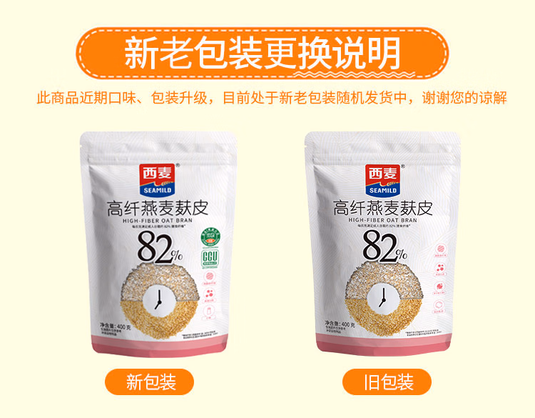 商品名称:西麦高纤燕麦麸皮400g 燕麦片低GI即食代餐营养早餐无额外添加蔗糖 单位:袋