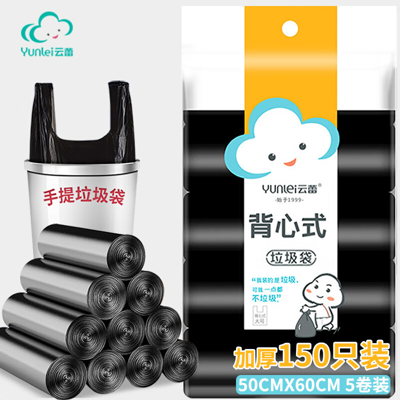 商品名称:云蕾 垃圾袋加厚背心手提式150只黑色中大号50*60cm厨房塑料袋 27371 单位:包