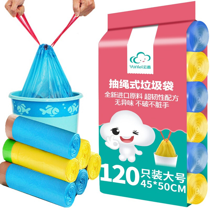 商品名称:云蕾 垃圾袋加厚120只中大号抽绳收口45*50cm分类厨房垃圾塑料袋 19345 单位:包
