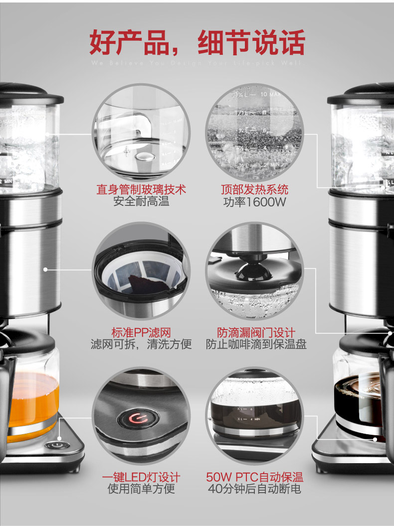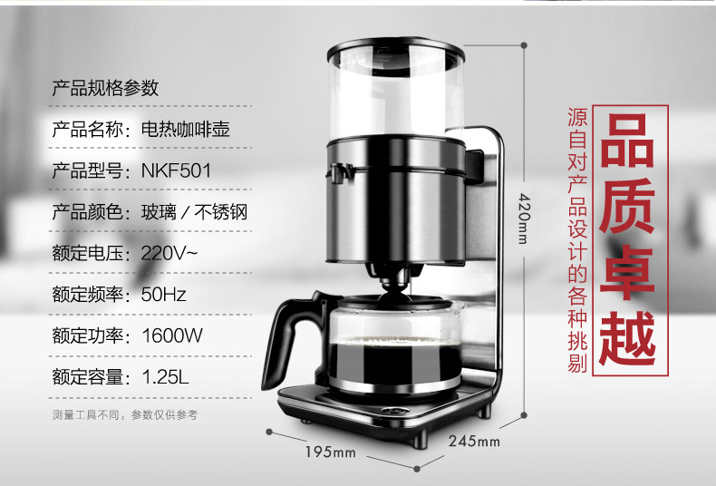 商品名称:北欧欧慕 咖啡机家用壁挂式1.25L冲泡滴漏式咖啡壶 NKF501