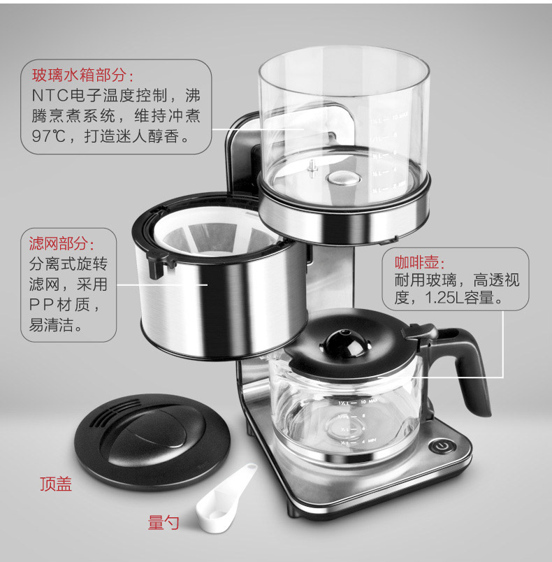 北欧欧慕 咖啡机家用壁挂式1.25L冲泡滴漏式咖啡壶 NKF501