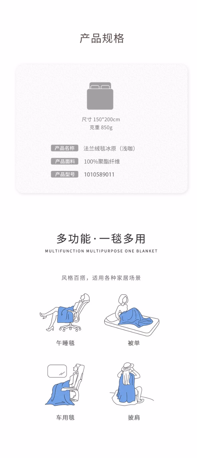 商品名称:梦洁家纺法兰绒毯-冰原1010500019