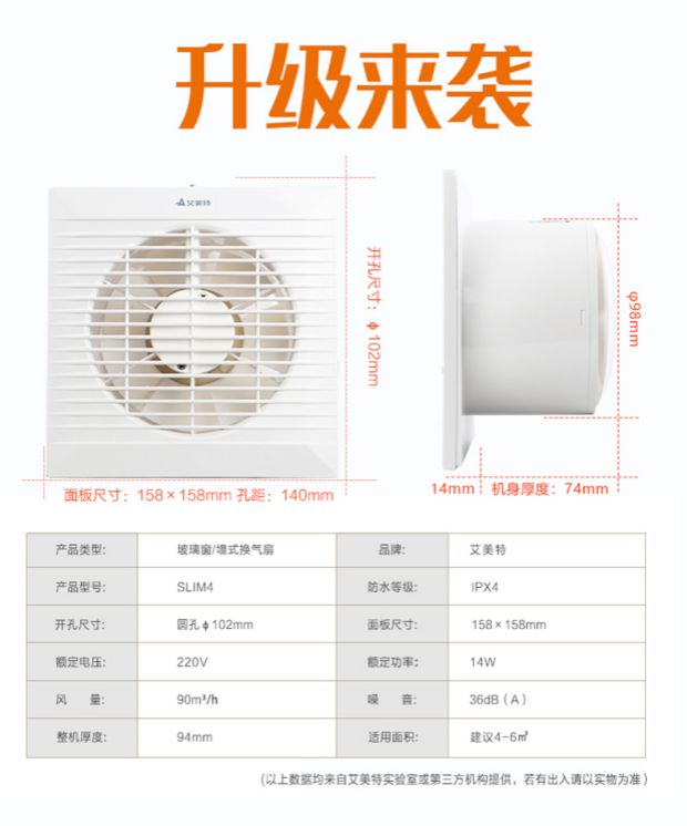 商品名称:艾美特 换气扇4寸窗式排气扇抽风机静音排风扇 SLIM4