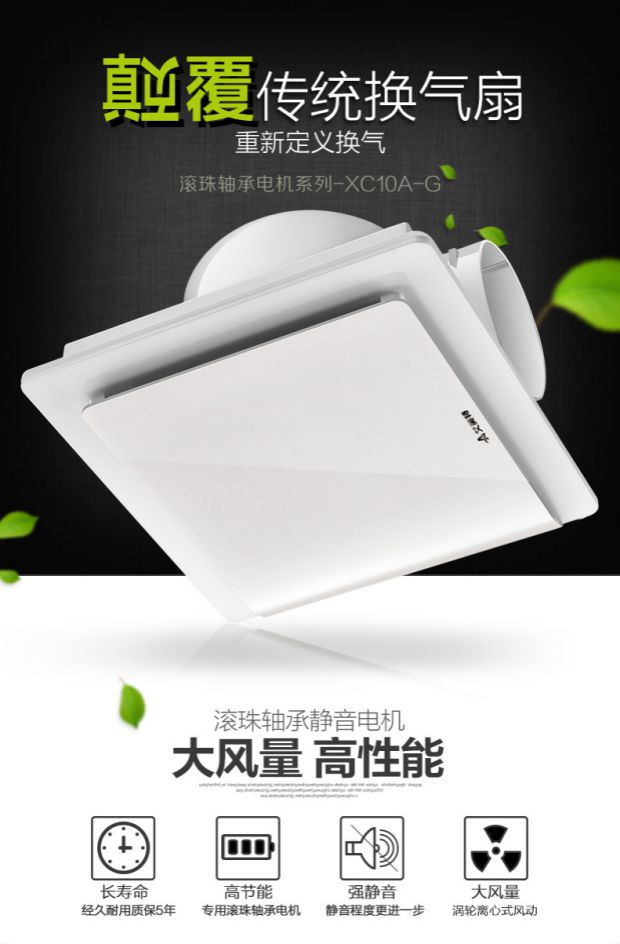 艾美特 换气扇吊顶管道式排风扇静音排气扇 XC10A-G