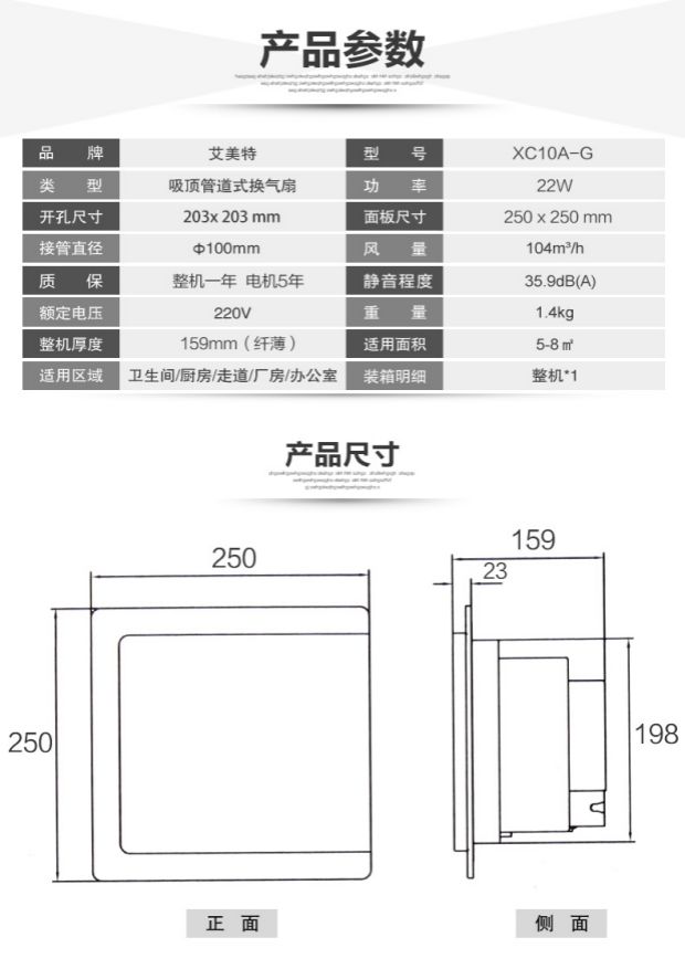 商品名称:艾美特 换气扇吊顶管道式排风扇静音排气扇 XC10A-G