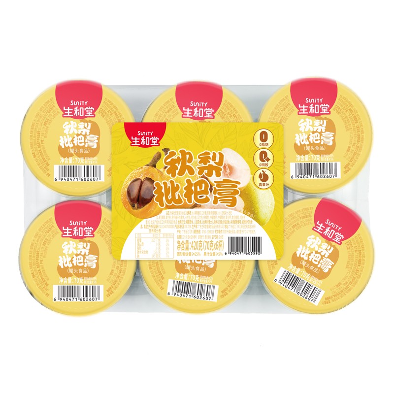 商品名称:生和堂 秋梨枇杷膏果汁果冻0脂健康休闲零食团购70g/杯 18杯装 单位:箱