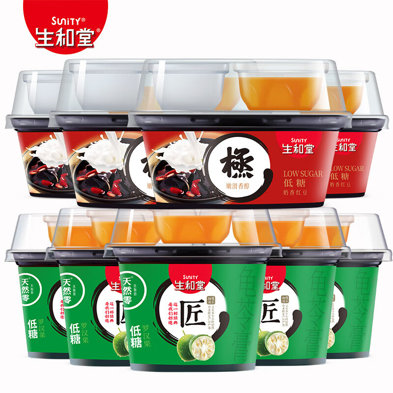 商品名称:生和堂 龟苓膏黑凉粉整箱多口味下午茶宵夜即食甜品 【9碗装】罗汉果*5+红豆奶香*4 单位:箱