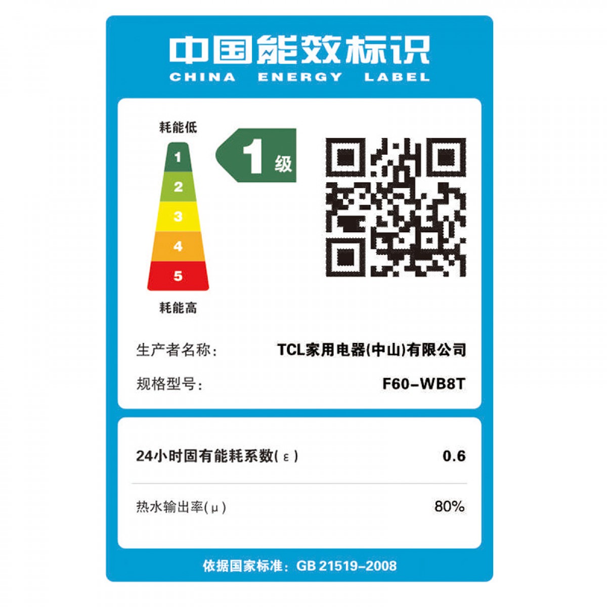 商品名称:TCL 电热水器60升速热预约储水式省电 F60-WB8T