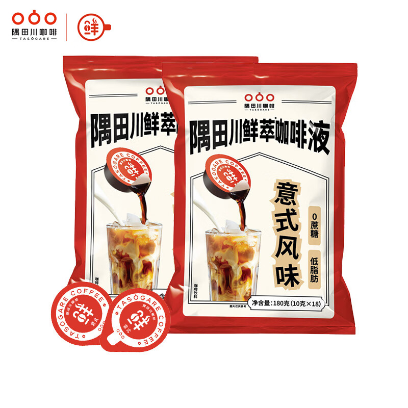 商品名称:隅田川 进口胶囊咖啡 原味13倍浓缩冷萃速溶黑咖啡液2袋 10g*36颗装/2袋 2袋/组 单位:组