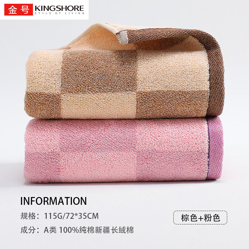 金号毛巾纯棉商务加大加厚面巾全棉洗脸毛巾2条装115g 72*35cm 棕+粉 单位:组