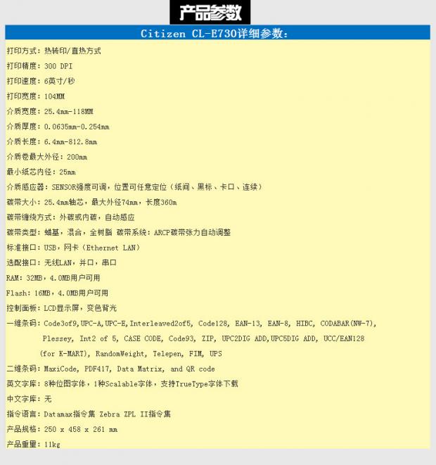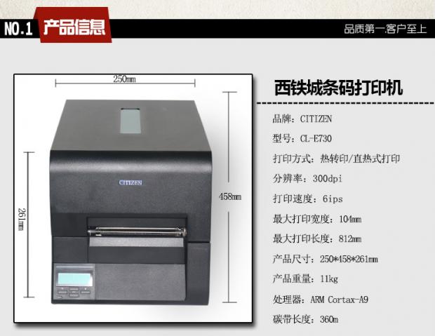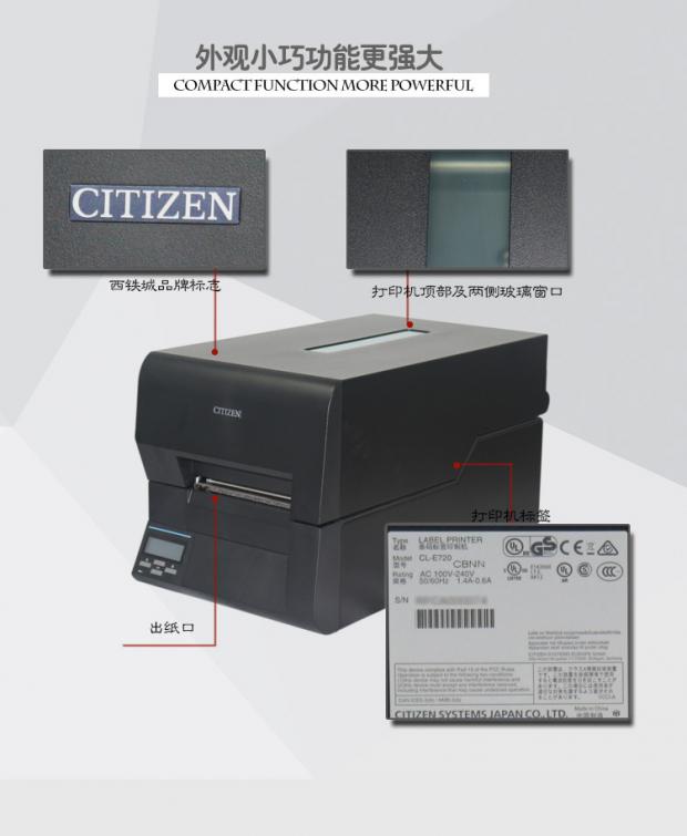 商品名称:西铁城 工业不干胶标签打印机吊牌门票水洗唛 CL-E720
