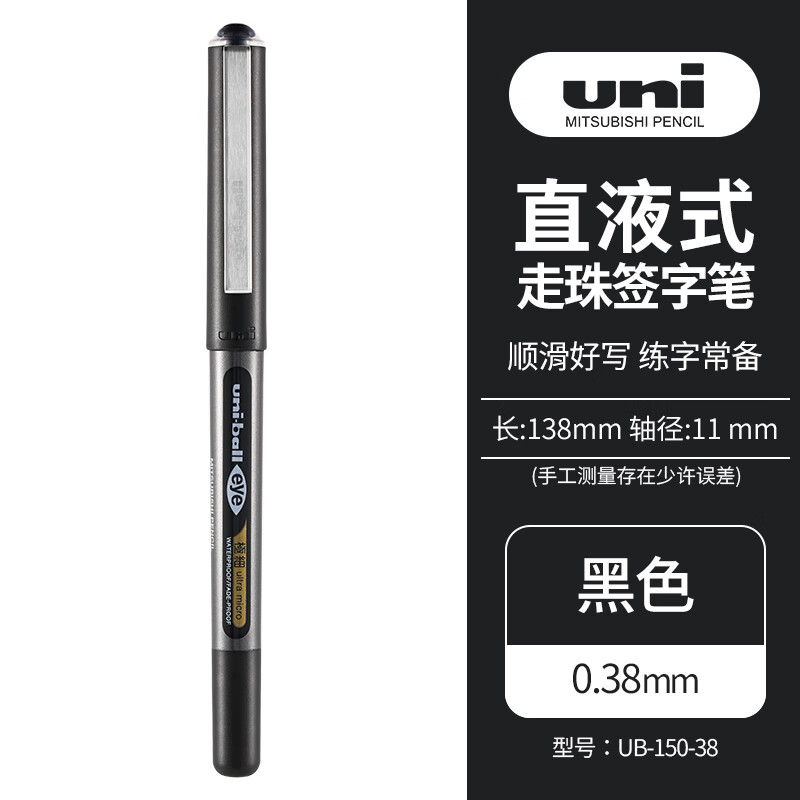 商品名称:三菱(Uni)UB-150中性笔直液式走珠笔签字笔 0.38mm耐水考试财务用笔 黑色 单支装 单位:支