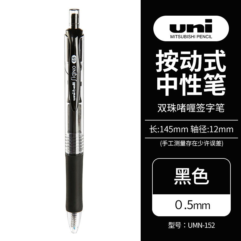 商品名称:三菱(Uni)UMN-152按动中性笔 0.5mm双珠啫喱笔学生考试签字笔(替芯UMR-85) 黑色 单支装 单位:支
