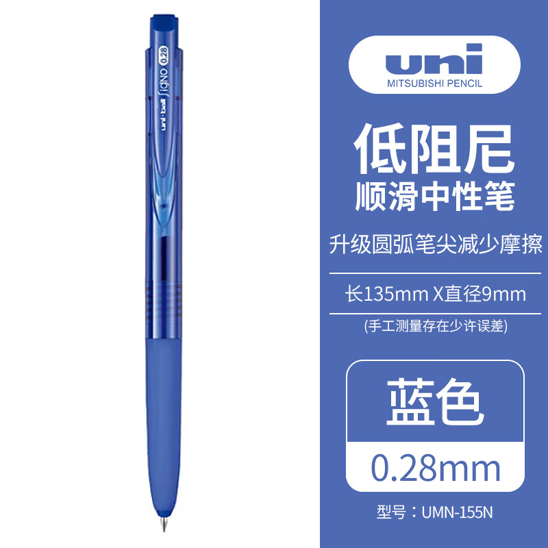 商品名称:三菱(uni)UMN-155N彩色按动中性笔 0.28mm 学生考试笔彩色手账标记笔啫喱笔 蓝色 1支装 单位:支