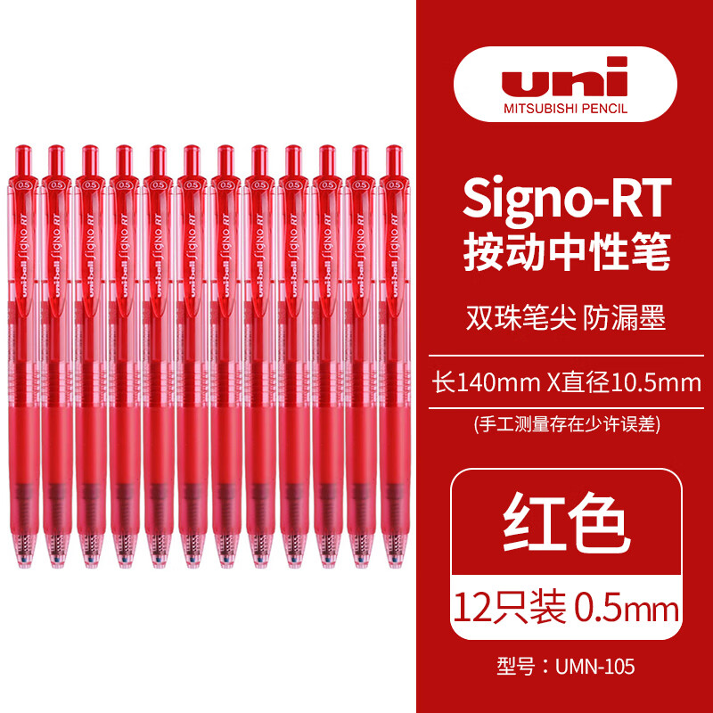 商品名称:三菱(Uni)UMN-105按动中性笔学生考试签字笔(替芯UMR-85)0.5mm红色12支装 单位:盒