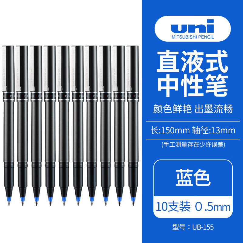 商品名称:三菱(Uni)UB-155中性笔走珠笔0.5mm学生考试耐水耐晒办公签字笔蓝色 10支装原装进口 单位:盒
