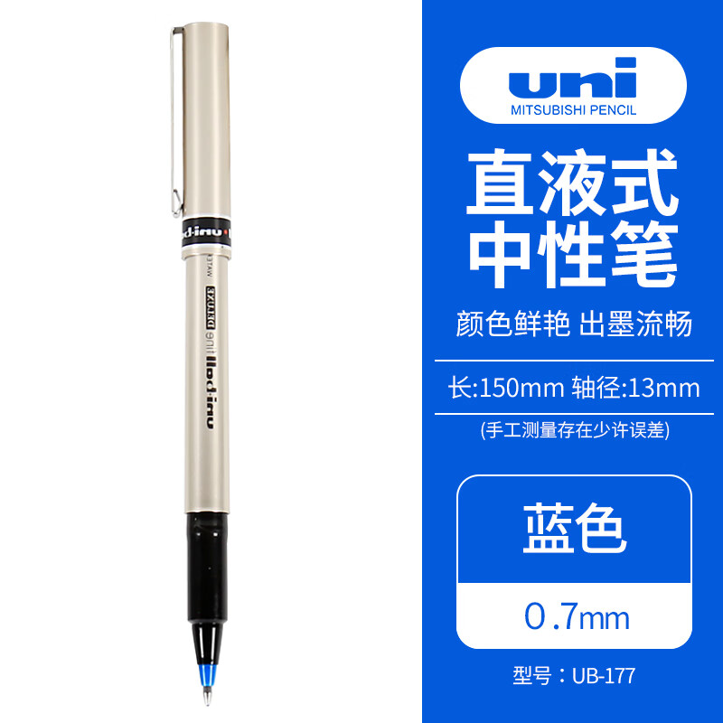 商品名称:三菱(Uni)UB-177中性走珠笔0.7mm金属质感商务办公签字笔 蓝色 1支装 单位:支