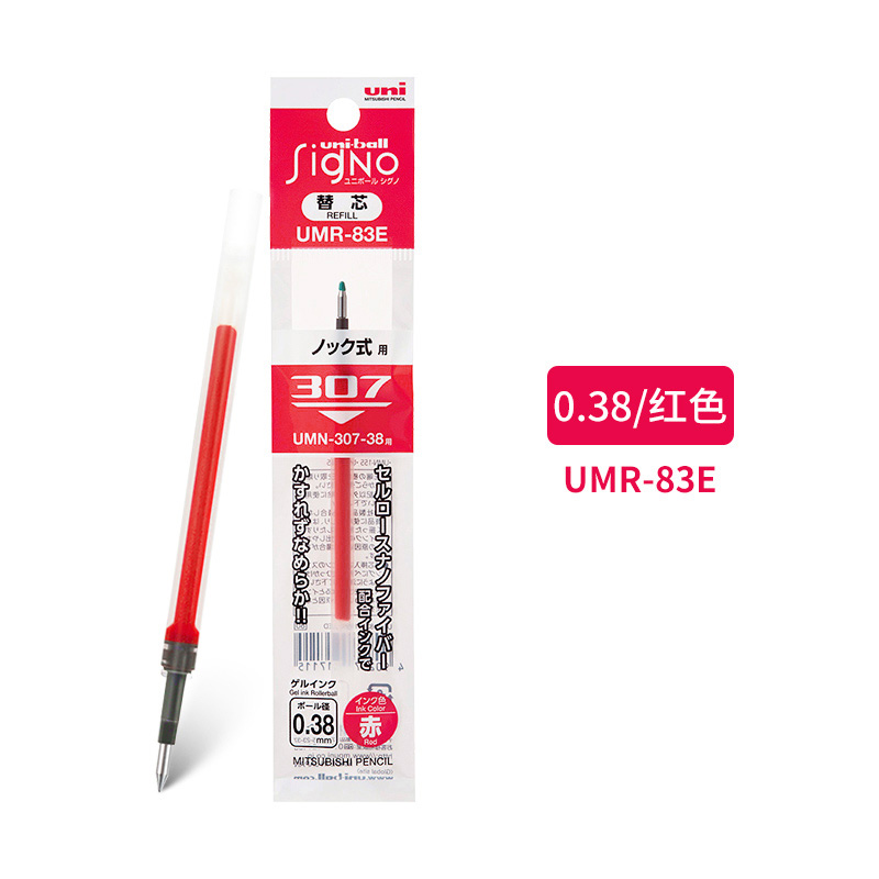 三菱(uni)UMR-83E中性笔芯(适用笔UMN-138/UMN-155)红色0.38mm 10支装 单位:组