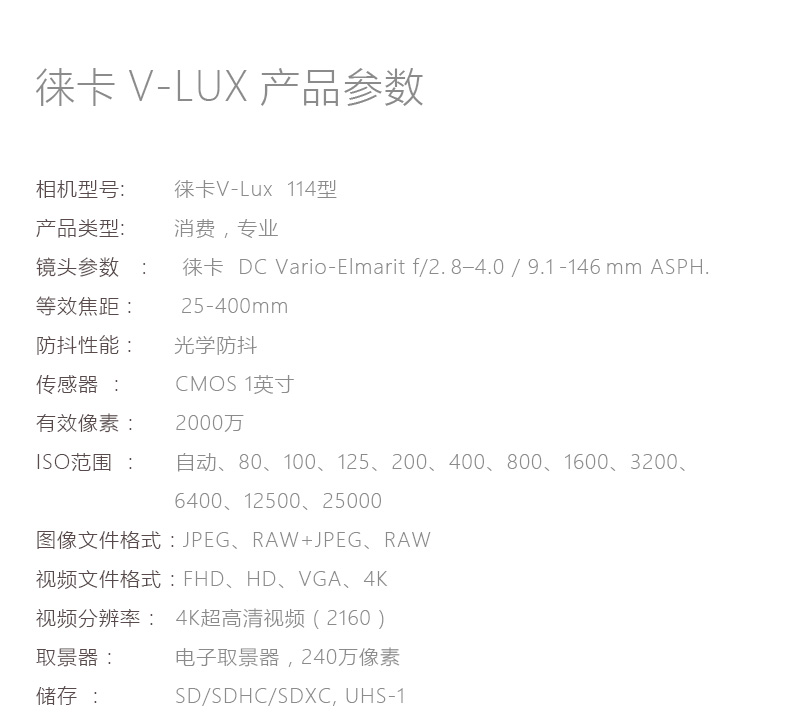商品名称:徕卡/Leica V-LUX数码相机 Typ114 单相机 18149