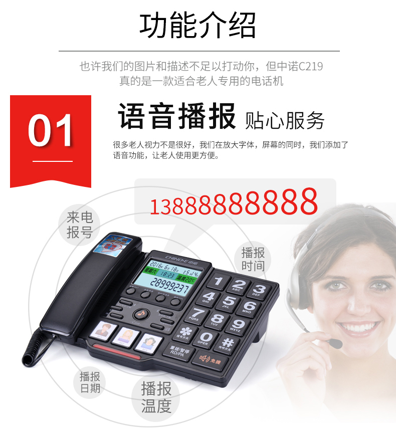 商品名称:中诺 老人座机座式单机语音报号 C219