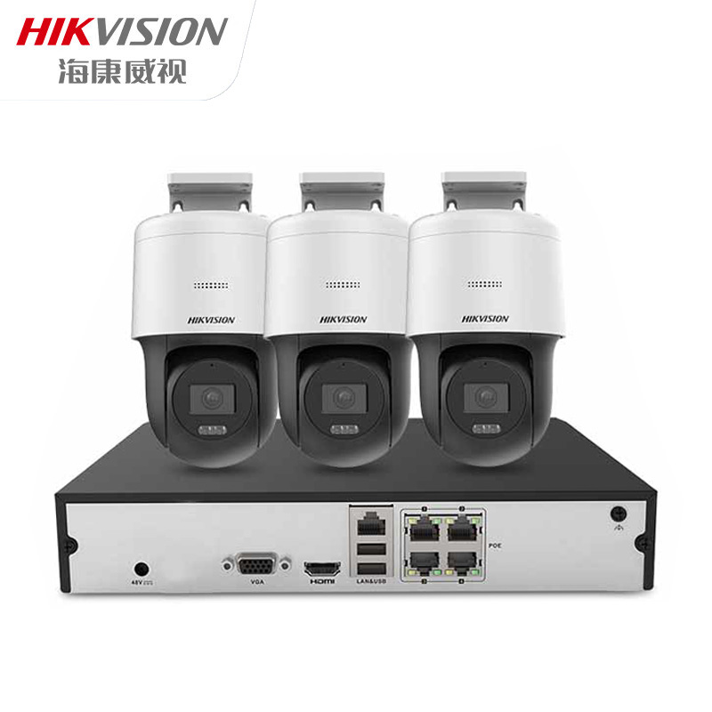 海康威视 摄像头监控套装3路400万全彩摄像机室内室外poe网线供电云台旋转语音对讲带1T硬盘140MY-TE 单位:套