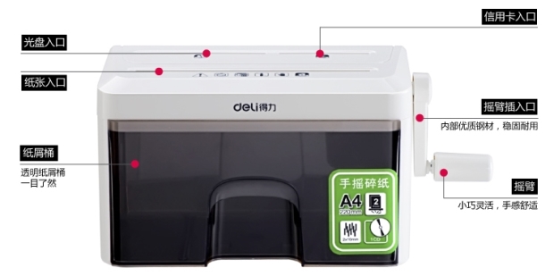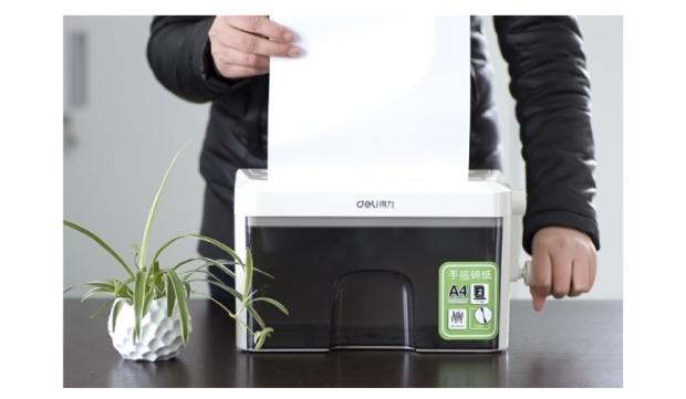 轻松碎纸,每次碎纸量为A4纸2张,碎纸效果为2×10mm,4级保密,方便更安心,图为碎纸实际使用过程展示