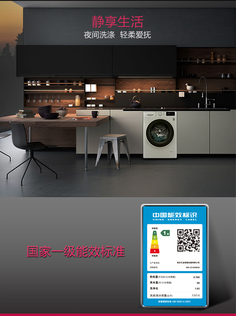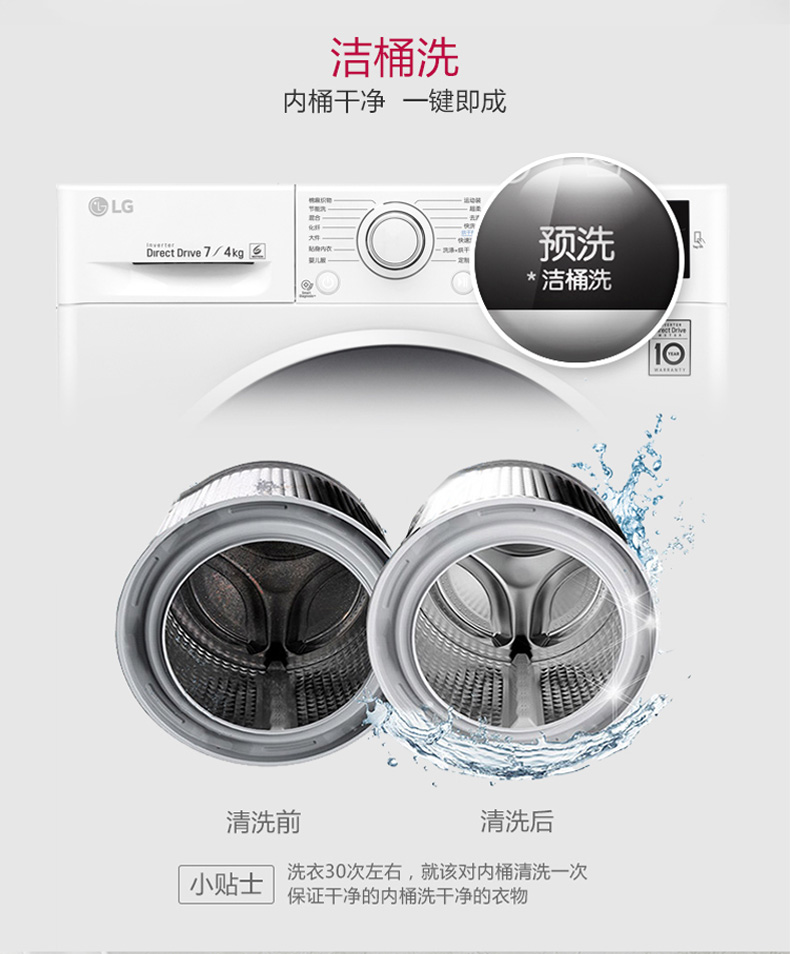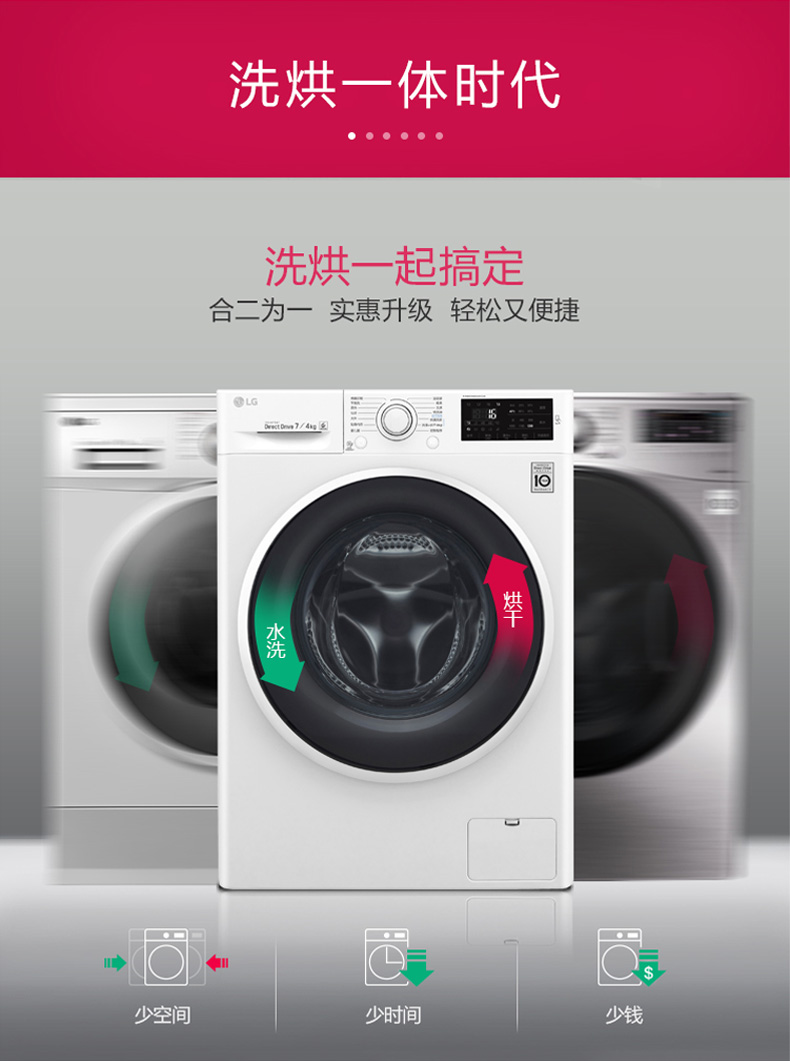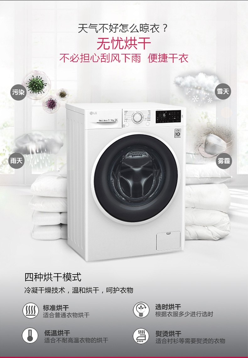 商品名称:LG 7kg直驱变频智能洗烘一体全自动滚筒洗衣机 WD-C51KNF20