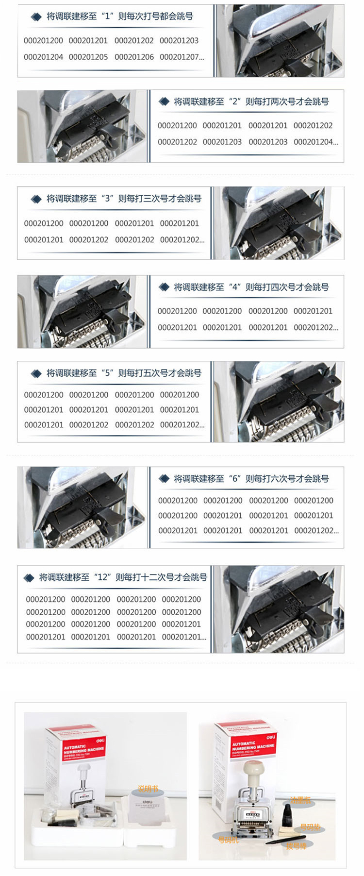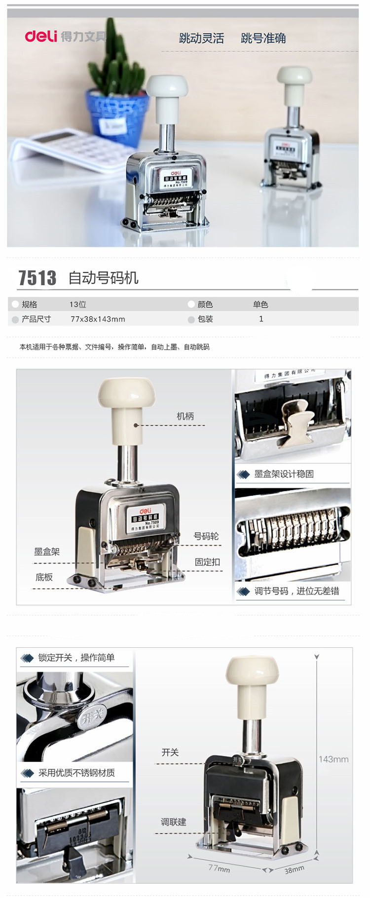 商品名称:得力 7513号码机 13位数字打号机页码机 可调数字印章打码器